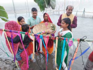 सुपौल उगते सूर्य भास्कर को छठ व्रतियों ने दिया अर्ग