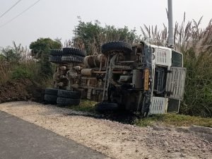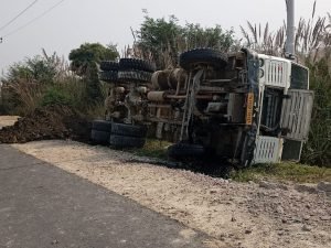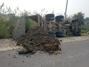 फतेहपुर खराब सड़क की वजह से अनियंत्रित होकर तेज रफ्तार डंपर पलटा
