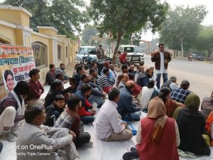 जिला एवं शहर कांग्रेस कमेटी फ़िरोज़ाबाद द्वारा माननीय प्रदेश अध्यक्ष श्री अजय कुमार लल्लू जी के निर्देश पर गृह राज्य मंत्री अजय मिश्रा टेनी की बर्खास्तगी एवं गिरफ्तारी के लिए जिला मुख्यालय दबरई पर धरना दिया गया।जिसमें मुख्य अतिथि के रूप में उत्तर प्रदेश कांग्रेस कमेटी के सचिव एवं जनपद फिरोजाबाद के प्रभारी माननीय श्री आशुतोष दीक्षित जी शामिल हुए।इस मौके पर धरना प्रदर्शन को संबोधित करते हुए प्रदेश सचिव श्री आशुतोष दीक्षित जी ने कहा कि जिस प्रकार से भारतीय जनता पार्टी के मंत्री और उसके पुत्र और उसके समर्थकों द्वारा देश के अन्नदाता(किसान) को निर्दयता के साथ कुचला गया,और पत्रकारों के साथ जो बदसलूकी की गई उसकी कांग्रेस पार्टी निंदा करती है।जिला अध्यक्ष संदीप तिवारी ने कहा जब तक भारतीय जनता पार्टी अपने मंत्री को बर्खास्त एवं गिरफ्तार नहीं करती तब तक कांग्रेस पार्टी अन्नदाता को न्याय दिलाने के लिए इसी प्रकार से संघर्ष करती रहेगी और मंत्री को बर्खास्त कर एवं सजा दिलवाकर ही दम लेगी। शहर अध्यक्ष हाजी साजिद बेग ने कहा भारतीय जनता पार्टी किसान विरोधी पार्टी है देश के अन्नदाता से इसका कोई लेना देना नहीं है यह जन विरोधी पार्टी है और चंद पूंजीपतियों की पार्टी है अपने पूंजीपति मित्रों को लाभ पहुंचाने के लिए यह किसी भी हद तक जा सकती है।धरने में शशि शर्मा ,धर्म सिंह यादव,मनोज भटेले,दुष्यंत धनगर ,कमलेश जैन ,दाऊद खान,जगदीश वाल्मीकि, योगेश दिवाकर,प्रतिमा पाल,साधना जादौन,मधु यादव,संत राम, मोहज़म परवेज़,वकार अहमद,मोहसिन कंट्रोल,ज़फ़र शेख,लाला राइन गाँधी, संजय यादव, मुकेश गॉड,कमल किशोर जादौन,विपिन धारिया धीरेंद्र सिंह जुरैल, अवनीश यादव,विभूति बघेल,शानू यादव,संतोष लोधी,चंद्रकांत यादव, रोहित यादव,अवनीश यादव,साहब सिंह अमर सिंह, राजेश दिवाकर, अमर सिंह, विवेक चक, आदिल भाई, संतोष कुमार आर्यन, श्याम बाबू, आजम चौधरी,दीपू भटेले,हर्षित आदि लोग उपस्थित थे।