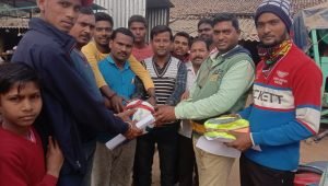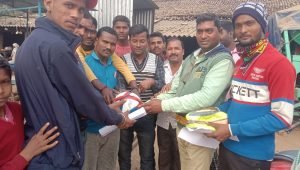 फुटबॉल पा कर सभी युवा प्रसन्न होते हुए एक साथ जोरदार तालियों से दिनेश कुमार का अभिवादन किया।