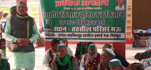 चित्रकूट जनपद भारतीय किसान यूनियन इकाई चित्रकूट और किसान भाइयों ने मऊ तहसील परिसर में प्रारंभ किया क्रमिक अनशन। किसान भाइयों की धान की फसल तैयार है लेकिन सरकारी खरीद केन्द्र ना खुलने से व्यवसायियों के हाथों में औने पौने रेट में बेचने को मजबूर है। मऊ तहसील अध्यक्ष विनय कुमार त्रिपाठी उर्फ मुन्ना देवरवा की अध्यक्षता में सैकड़ों किसान और भारतीय किसान यूनियन के पदाधिकारियों ने 15 12 2021 से क्रमिक अनशन पर मऊ तहसील परिसर में बैठे। तहसील अध्यक्ष मऊ विनय कुमार त्रिपाठी ने कहा क्रमिक अनशन तब तक चलता रहेगा जब तक खंडेहा लाबेद में सरकारी धान खरीद खरीद नहीं खुल जाता है। पहली तहसील अध्यक्ष ने बात को आगे बढ़ाते हुए कहा कि इस समय किसान यूरिया डीएपी और अन्ना निराश्रित गोवंश से परेशान है वही जो बची कुची फसल थोड़ा बहुत तैयार हुई है उस फसल को लेकर भी परेशान है किसान। सरकारी धान खरीद ना खुलने से यह किसान आखिर यह धान की फसल को लेकर कहां जाए। इस मौके पर बहुत से किसान भाई और भारतीय किसान यूनियन के पदाधिकारी मौजूद रहे।