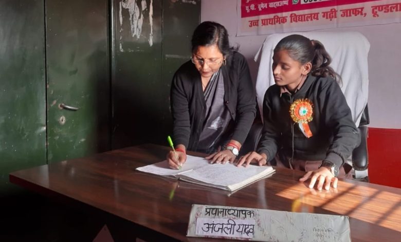 जिला बेसिक शिक्षा अधिकारी फिरोजाबाद के निर्देशन में मिशन शक्ति फेस 5 में 1 दिन की अधिकारी कार्यक्रम के तहत आज दिनांक 22/11/2024 को उच्च प्राथमिक विद्यालय गढ़ी जाफर में कु.अंजली यादव छात्रा कक्षा 8 को 1 दिन का प्रधानाध्यापक नियुक्त किया गया उनके द्वारा प्रार्थना सभा अध्यापक उपस्थित छात्र उपस्थित कक्षा व्यवस्था आदि का अवलोकन किया गया साथ ही साथ विद्यालय के लंबित कार्यों पर भी विशेष ध्यान दिया गया । डीबीटी, यू डाइस, छात्र उपस्थित इन पर उनके दिशा निर्देश प्राप्त हुये जिसके अनुपालन में समस्त स्टाफ ने पूरे दिन उनके निर्देशों का पालन किया हम अंजली यादव प्रधान अध्यापक 1 दिन की अधिकारी के उज्जवल भविष्य की कामना करते हैं ।कार्यक्रम का संचालन श्री मती सरिता शर्मा नोडल मिशन शक्ति फेस 5 के द्वारा किया गया तथा विद्यालय स्टाफ का अभूतपूर्व सहयोग रहा