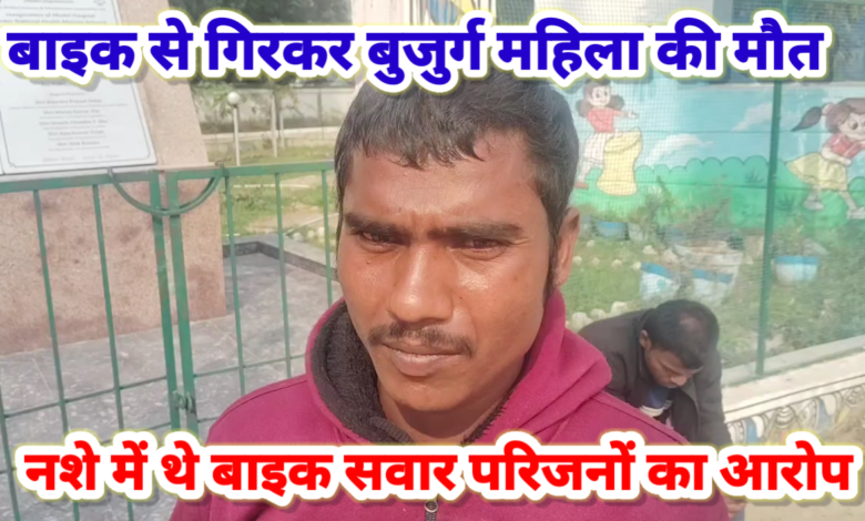 बाइक से गिरकर बुजुर्ग महिला की मौत, नशे में थे बाइक सवार परिजनों का आरोप।