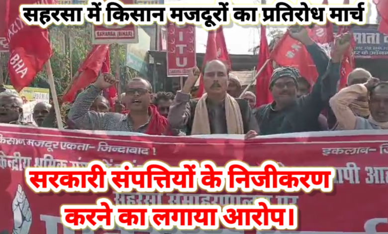 सहरसा में किसान मजदूरों का प्रतिरोध मार्च सरकारी संपत्तियों के निजीकरण करने का लगाया आरोप।